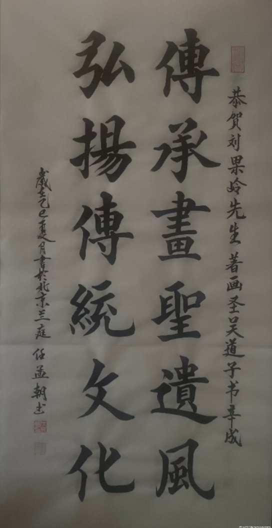 任孟朝,1949 年出生于九朝古都洛阳,斋号“笔行天下”。他是中国书法家协会资深会员,在书法艺术领域深耕五十余载,是书法艺术界的杰出代表。任孟朝不仅在书法创作上成就斐然,还积极投身公益事业,担任禹州市关心下一代志愿者协会书画艺术专委会主任,致力于书法艺术的传承与推广,培养新一代书法人才。他在众多艺术机构任职,担任北京市墨缘宝书画院院士、北京长城长书画院会员、中原传统书画院副院长、东坡书画艺术研究院常务理事等职。2015 年,其作品《马到成功》被中国美术馆永久珍藏,这是对他艺术成就的高度认可。他还凭借独创的泡沫书法获得国家专利,被《北京乡镇论坛报》誉为“泡沫书法第一人”。任孟朝五体皆精,真草隶篆行样样精通。楷书融合颜真卿的雄浑、王羲之的飘逸和欧阳询的严谨,如泰山般巍峨;行草取法孙过庭等历代宗师,似行云流水,刚柔相济、气韵生动;隶书独具特色,“飞白”笔墨如老梅着花,苍劲中显风骨,古拙中见灵韵。