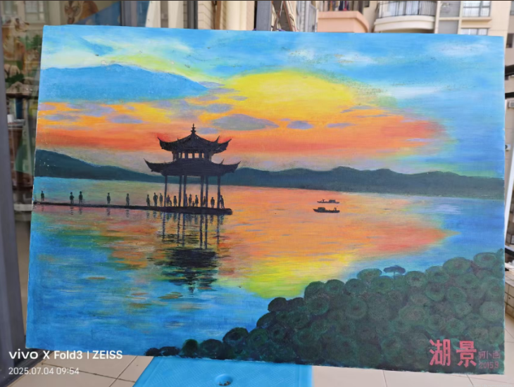 一生喜欢绘画,业余时间从不间断学绘画,青少年期间的绘画作品都选去参加县市直到湛江专区的画展,为绘画打下深厚基础。退休后的画作曾在广州展出过。