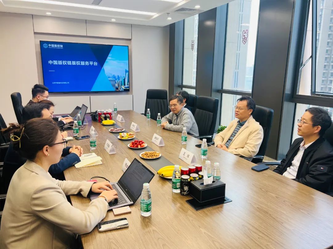 3月30日下午,北京工业大学(以下简称北工大)文法学部法律系主任谭柏平、党支部书记聂孝红、副主任王辉、赵宇哲、教师代表涂靖等一行到访国家版权创新基地并与中国版权链(以下简称中版链)相关负责人举行校企合作座谈会。