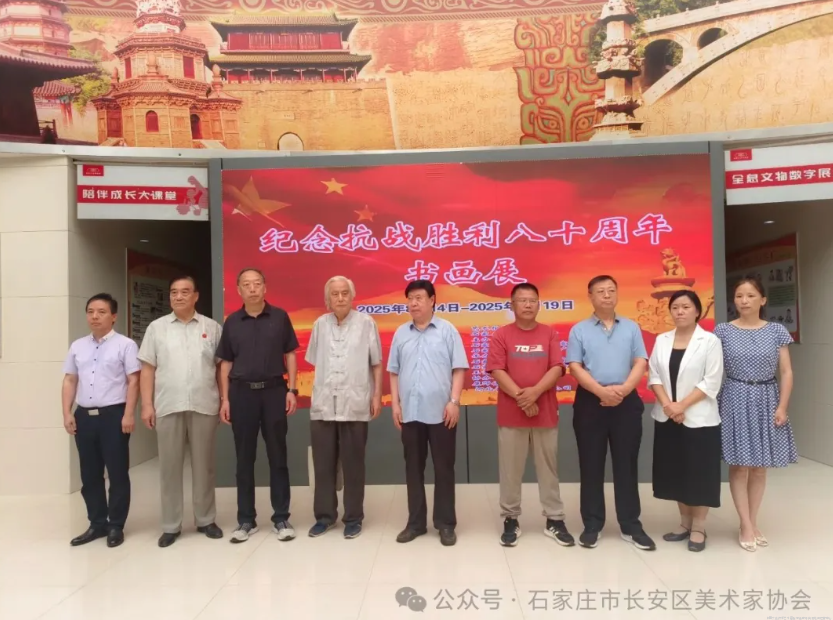 烽火岁月虽已远,精神血脉永流传。2025年8月14日,在纪念中国人民抗日战争暨世界反法西斯战争胜利八十周年即将到来之际,由石家庄市美术家协会指导;中共石家庄市长安区委宣传部,石家庄市长安区文化广电体育和旅游局联合主办;石家庄市长安区美术家协会和石家庄市长安区文化馆承办;王景春美术家工作室等单位协办的《铭记历史 丹青铸魂》纪念中国人民抗战胜利八十周年书画展活动在石家庄市博物馆盛大开幕,本次展览,汇聚全区书画爱好者的二百余幅佳作,展期至8月20日。我们以笔墨为媒,举办此次书画展,旨在回望历史烽烟,传承民族气节,用丹青妙笔铸牢精神之魂。